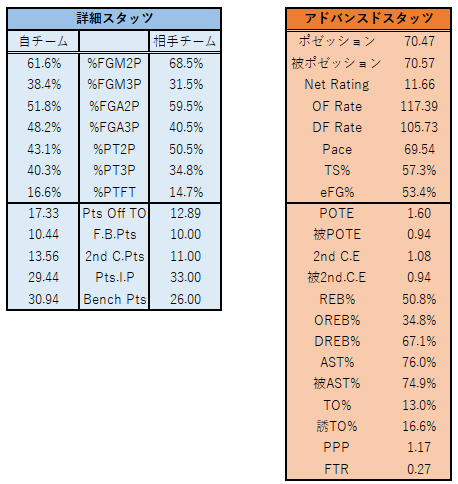 また、自チームのTOVは12本に抑え、その上でP.O.T.Eも0.83に留めたことも良かったですね。