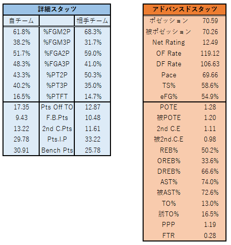 ただ、これまでチームトップのAPG:4.8を記録している選手が、この試合のASTは僅か1本。TOVも4本記録することに。前半イケイケだったことで、後半アジャストされてしまった感はあります。