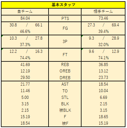 ただ、チームとしてネガティブな特徴もあって、あくまで長崎との比較論になりますが、ペースが遅く、その分、イージーバスケになりやすいF.B.Ptsが著しく少ないです。