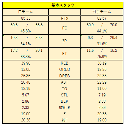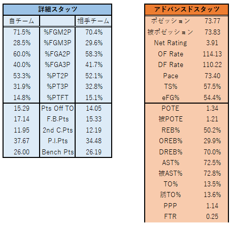 両選手ともPPG:15.0以上を記録するスコアラーが欠場となり、両チームともOFの編成やスカウティングが上手く機能しにくい、難しい試合になりました。
