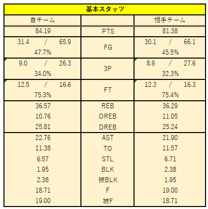 ただ、明確に弱点となっているのがDF面。上位に食い込もうとしているチームとしては、被FG%が45.5%と高め。誘発しているTOVも11.57本と少ないのも特徴的です。