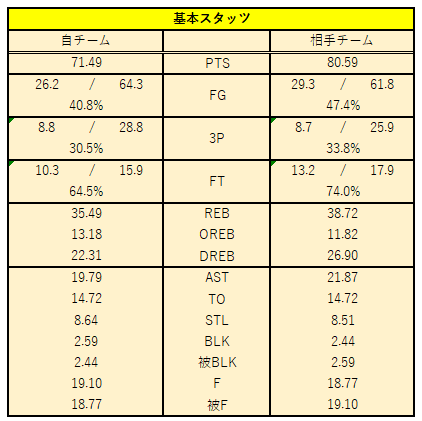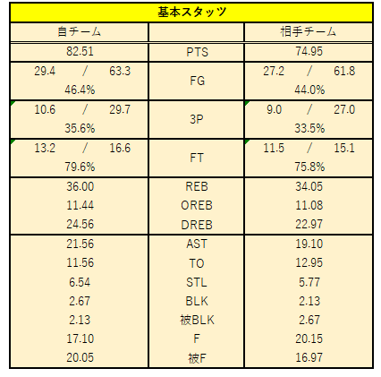 データベースでチームを紐解くと、平均得点:71.49得点という数字は、戦前時点でリーグ最下位の数字。FG%:40.8%、3P%:30.5%も同様にリーグ最下位の数字です。
