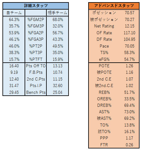 ただ、DFのやり合いには煽られたものの、OFの組み立ては試合を進めるごとに落ち着きを取り戻し、AST%:73.1%と本来の力を取り戻し、得意のパッシングゲームで試合をモノにしました。