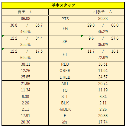 FG%や3P%を見ると、群馬と大きく変わらないチームですが、その内訳は結構異なります。